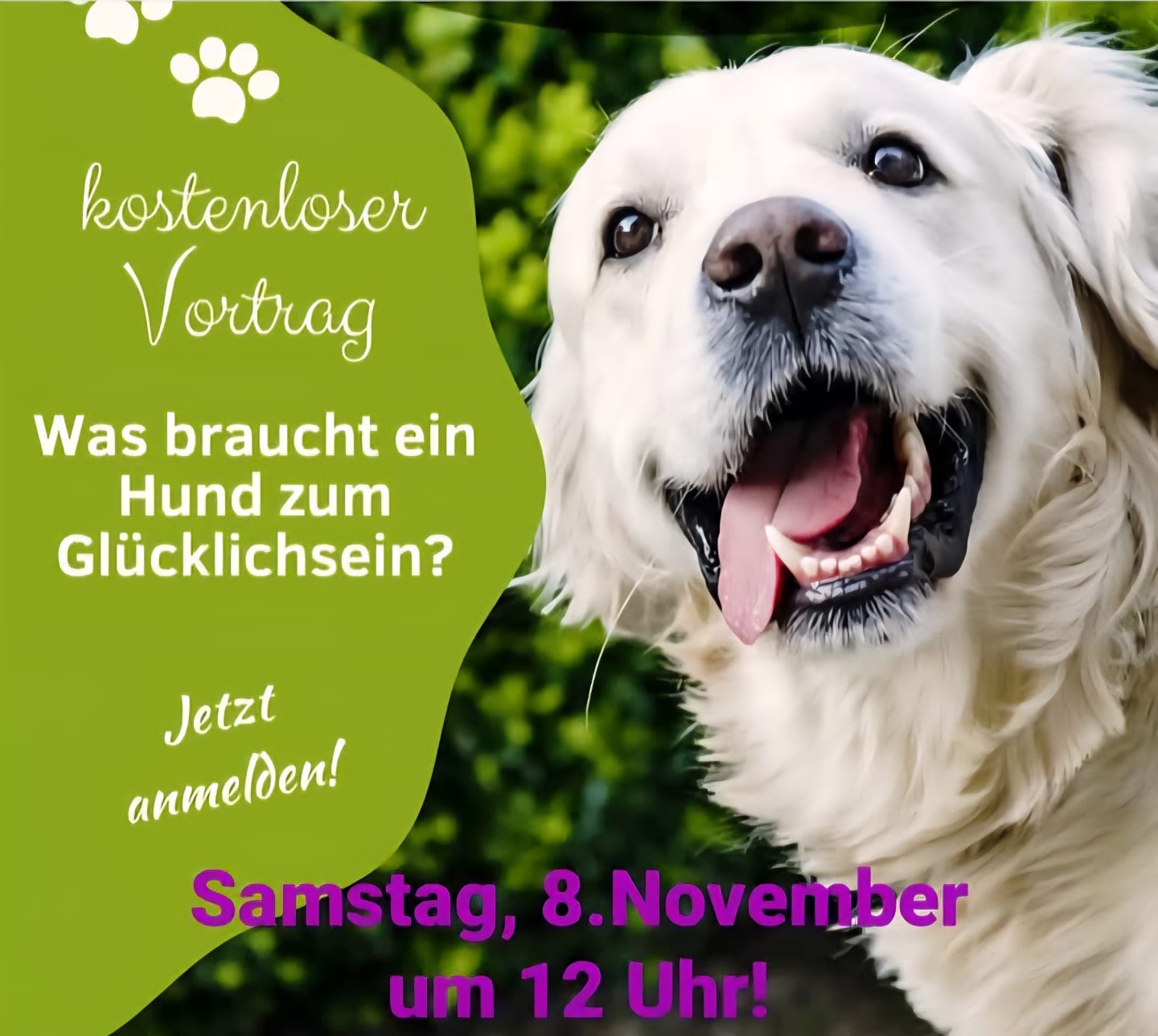 Ich starte um 12 Uhr mit meinem Kurzvortrag: "Was braucht dein Hund zum Glücklichsein?"